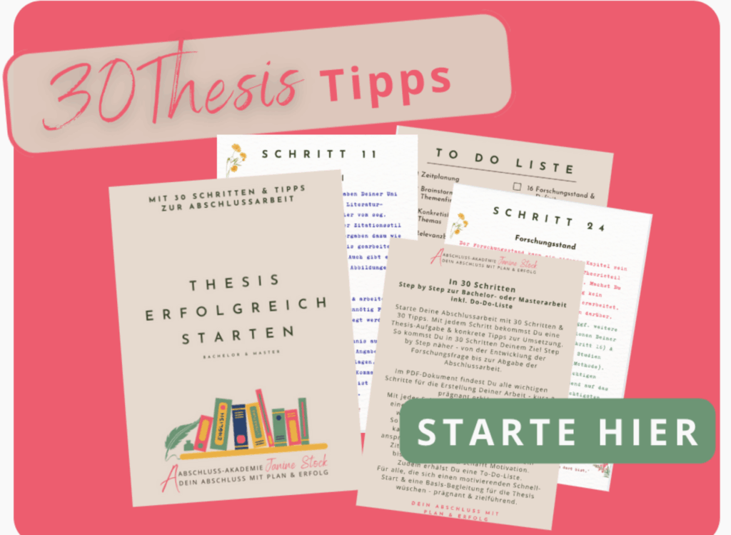 Lass Dich bei Deiner Thesis unterstützen – mit einem konkreten Plan, vielen Tipps & hoher wissenschaftlicher Expertise.