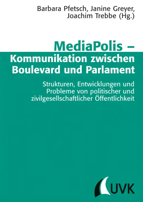 - Pfetsch, Barbara/Greyer, Janine/Trebbe, Joachim (2013): MediaPolis – Kommunikation zwischen Boulevard und Parlament. In: ders. (Hrsg.): MediaPolis – Kommunikation zwischen Boulevard und Parlament. Strukturen, Entwicklungen und Probleme von politischer und zivilgesellschaftlicher Öffentlichkeit. Schriftenreihe der Deutschen Gesellschaft für Publizistik- und Kommunikationswissenschaft (Band 40). Konstanz: UVK, S. 11–19.