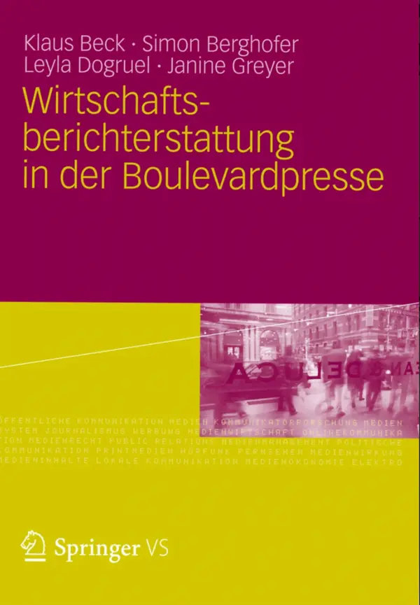 - Beck, Klaus/Berghofer, Simon, Dogruel, Leyla/Greyer, Janine (2012): Wirtschaftsberichterstattung in der Boulevardpresse. Redaktionelle Strukturen, Kommunikatoren, Inhalte und Formen. Wiesbaden: Springer VS.