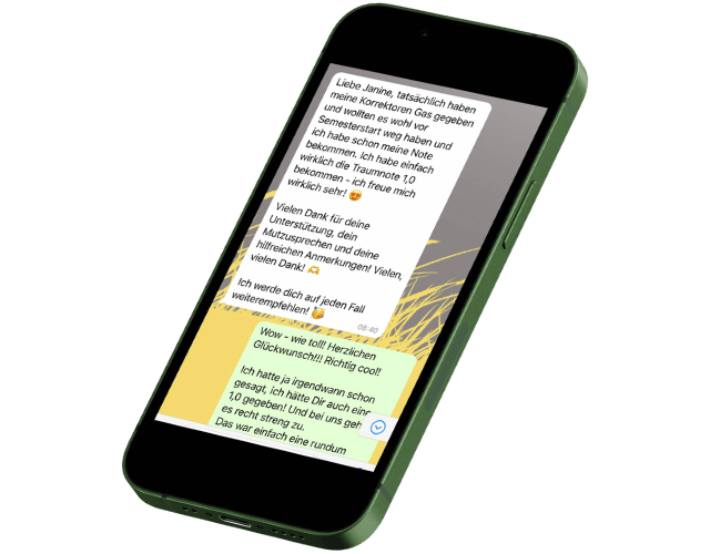 ich habe meine Bachelorarbeit mit einer 1,0 bestanden! Danke für Deine Unterstützung. Ohne Dich wäre das niemlas möglich gewesen! Du bist der Wahnsinn. …